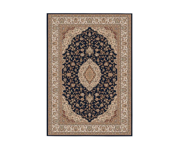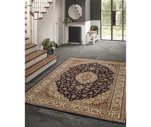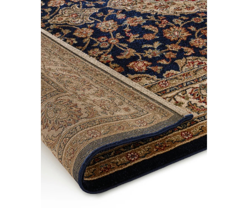 Mira Wilton-tæppet er maskinvævet i 100% heatset polypropylen, hvilket sikrer høj slidstyrke og nem vedligeholdelse. Den dybe blå nuance kombineret med klassiske orientalske mønstre skaber et raffineret udtryk, som harmonerer smukt med både moderne og mere traditionelle indretninger. Det detaljerede design tilfører rummet varme og karakter, mens den robuste kvalitet gør tæppet ideelt til områder med meget daglig brug.