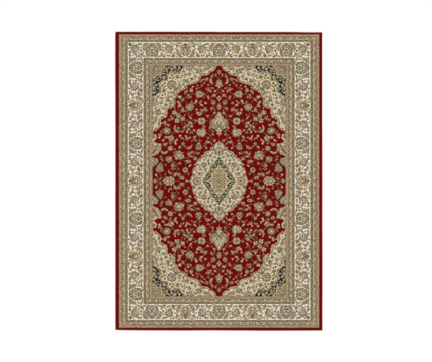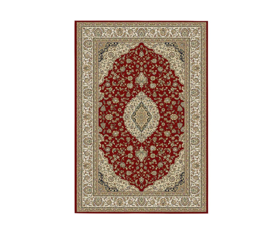 Mira Wilton-tæppet er maskinvævet i 100% heatset polypropylen, hvilket sikrer høj slidstyrke og nem vedligeholdelse. Den dybe røde nuance kombineret med klassiske orientalske mønstre skaber et raffineret udtryk, som harmonerer smukt med både moderne og mere traditionelle indretninger. Det detaljerede design tilfører rummet varme og karakter, mens den robuste kvalitet gør tæppet ideelt til områder med meget daglig brug.