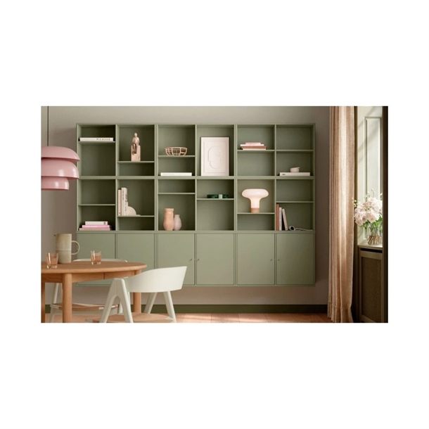 Mistral-serien giver dig frihed til at indrette dit hjem, præcis som du ønsker det. Den olivengrønne reolopstilling kan stå alene som et markant designstatement, men kan også kombineres med andre moduler og farver fra serien for et mere personligt udtryk. De åbne hylder giver plads til bøger, planter og dekorative elementer, mens de lukkede rum skaber ro og orden i hverdagen.