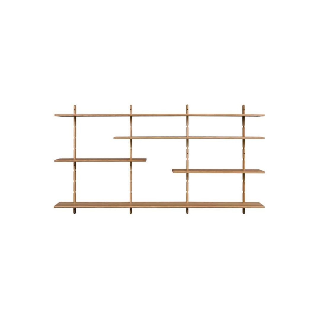 Det tidløse design passer ind i både minimalistiske og mere varme, nordiske indretninger. Reolen svæver let på væggen og giver dig mulighed for at fremvise dine favoritbøger, dekorative objekter eller personlige samlinger – på stilfuld vis.