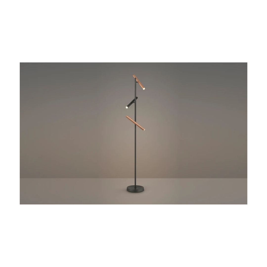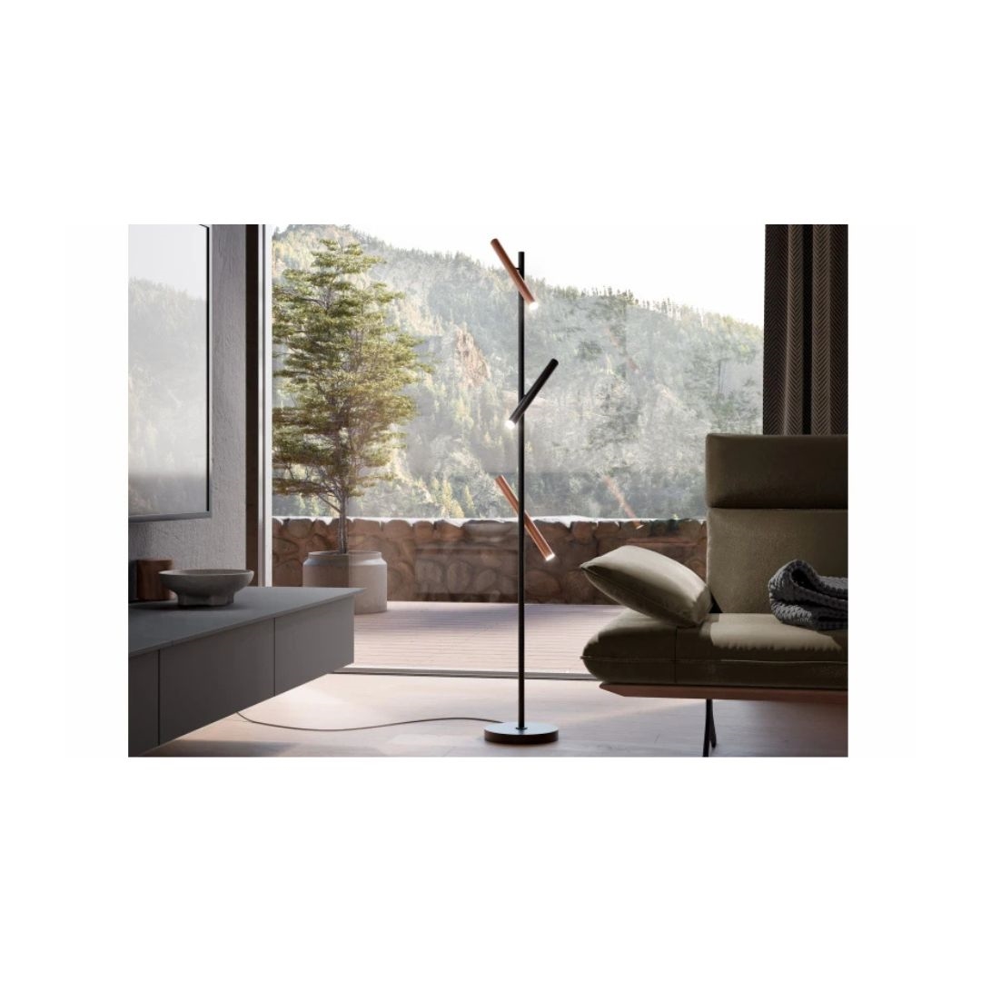 Den slanke lampe er udstyret med tre justerbare lyskilder i de eksklusive farver Sort og Coffee. De cylindriske lampehoveder kan drejes og vinkles individuelt, så du nemt kan skabe præcis den belysning, der passer til dit behov og din indretning.