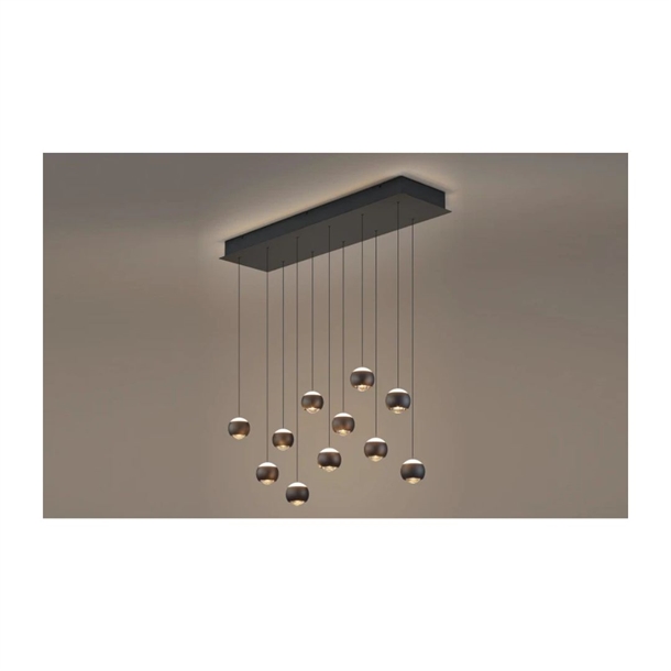 Pendlen består af flere elegante, kugleformede lampehoveder, der hænger i en harmonisk komposition og spreder et blødt, behageligt og funktionelt lys. Den smarte “Lift me” funktion gør det muligt at hæve eller sænke de enkelte lampeelementer, så lyset tilpasses præcis efter behov og udtryk.