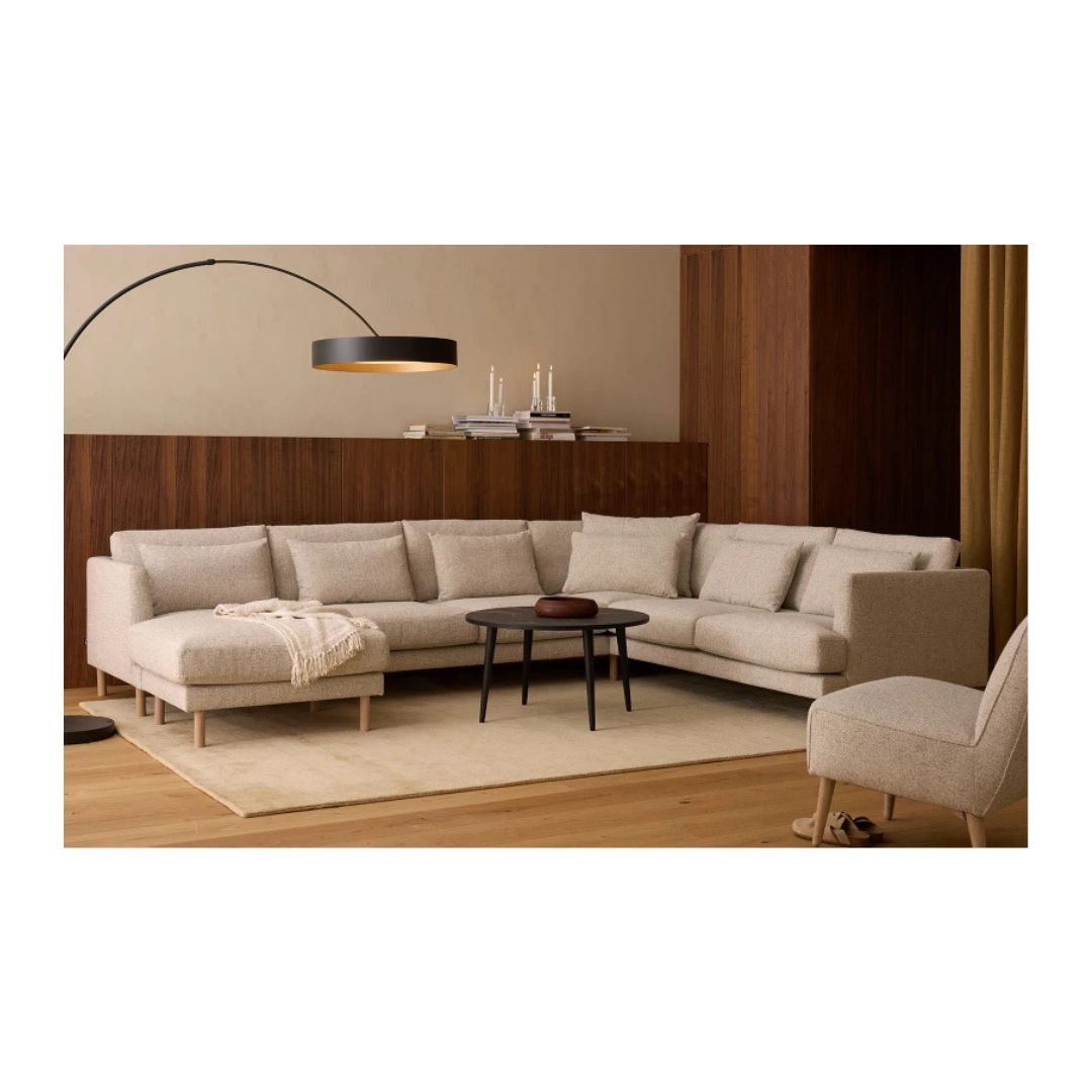 Den imponerende højde på op til 200 cm og den store lampeskærm på 60 cm i diameter giver et bredt og behageligt lys, der spreder sig blødt ud i rummet. Den lange, buede arm gør lampen ideel som belysning over sofaområdet, læsekrogen eller endda som alternativ til en pendel over spisebordet.