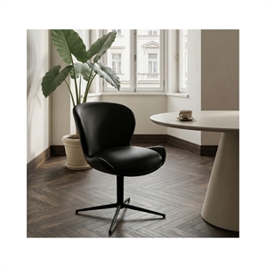 Nicklas spisebordsstolen kombinerer et moderne formsprog med en behagelig og indbydende komfort. Det sorte læder giver stolen et varmt og taktilt udtryk, mens skumpolstringen i sæde og ryg sikrer en komfortabel siddeoplevelse til både hverdag og gæster. Den praktiske 360° drejefunktion med returdrej giver god bevægelsesfrihed omkring spisebordet og sørger for, at stolen altid vender pænt tilbage på plads. Det centrale stel i sort metal giver stolen stabilitet og understøtter det let industrielle look.