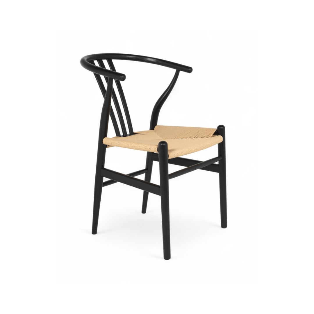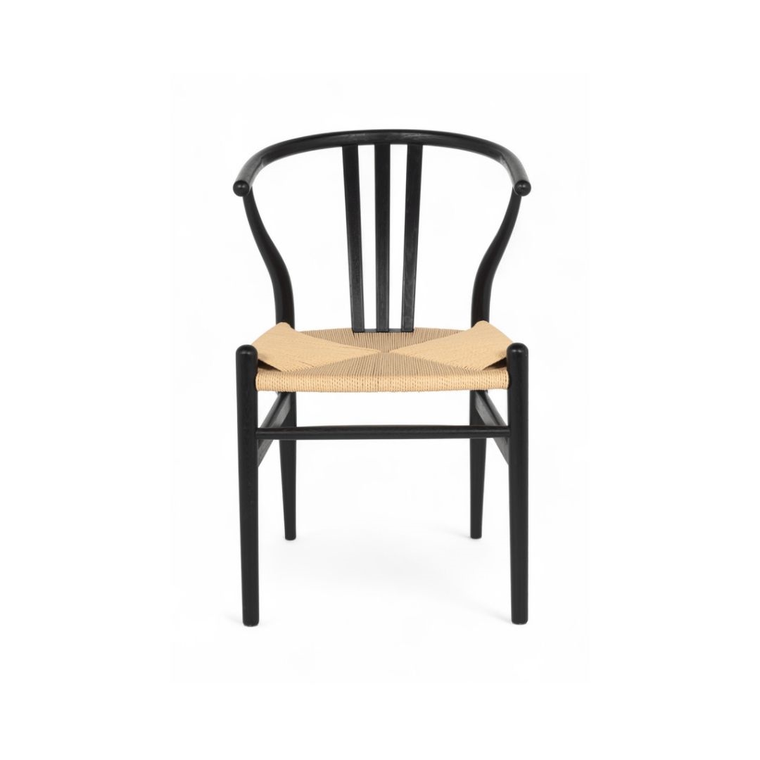 Nikoline spisebordsstol - Massiv eg sortbejdset - Lys flet - Stærk pris