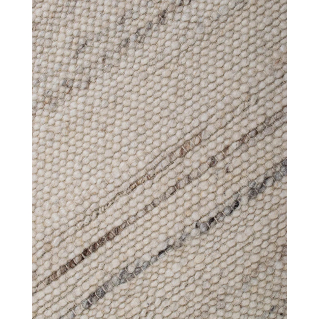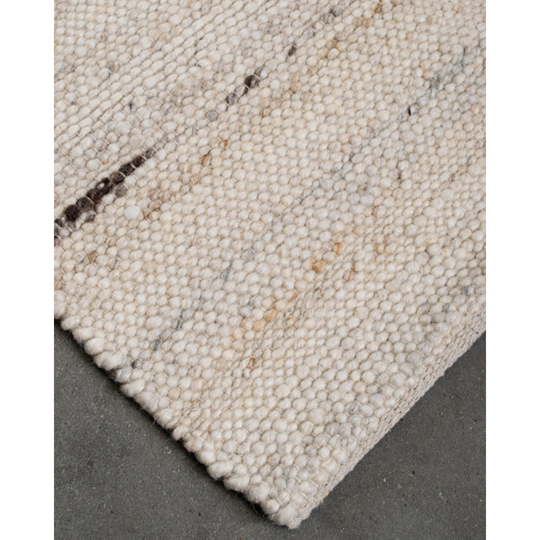 Nuuk-tæppet er håndvævet i en eksklusiv blanding af 90% uld og 10% bomuld, som giver en varm, naturlig og behagelig overflade. De smukke, neutrale nuancer gør det let at integrere i enhver indretning og tilfører en rolig, jordnær elegance. De naturlige materialer bidrager til et tidløst udtryk, der smukt løfter stemningen i rummet.