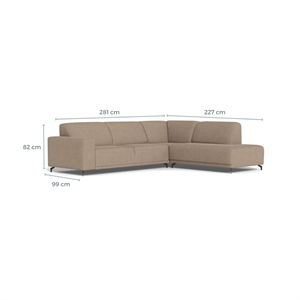 OHIO OPEN-END SOFA - 6146 LIGHT BROWN STOF - MÅL: 281 X 227 CM.