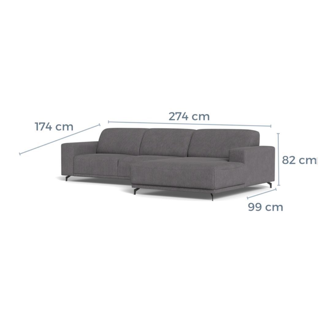 Ohio sofa med chaiselong - Grå 6149 fløjl stof - Mål: 274 X 174 CM.