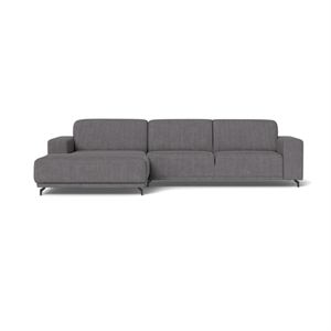 Den store chaiselong gør Ohio til et naturligt samlingspunkt i stuen, hvor funktionalitet og æstetik går hånd i hånd. Sofaen kan bestilles med både højre- og venstrevendt chaiselong, så du kan tilpasse den efter rummets indretning. Den grå fløjl skaber en varm og behagelig atmosfære, og de sorte metalben giver et let og moderne løft, der får sofaen til at fremstå elegant i rummet.