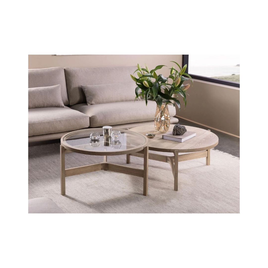 Optic glas rundt sofabord – Massiv ask - Flere varianter
