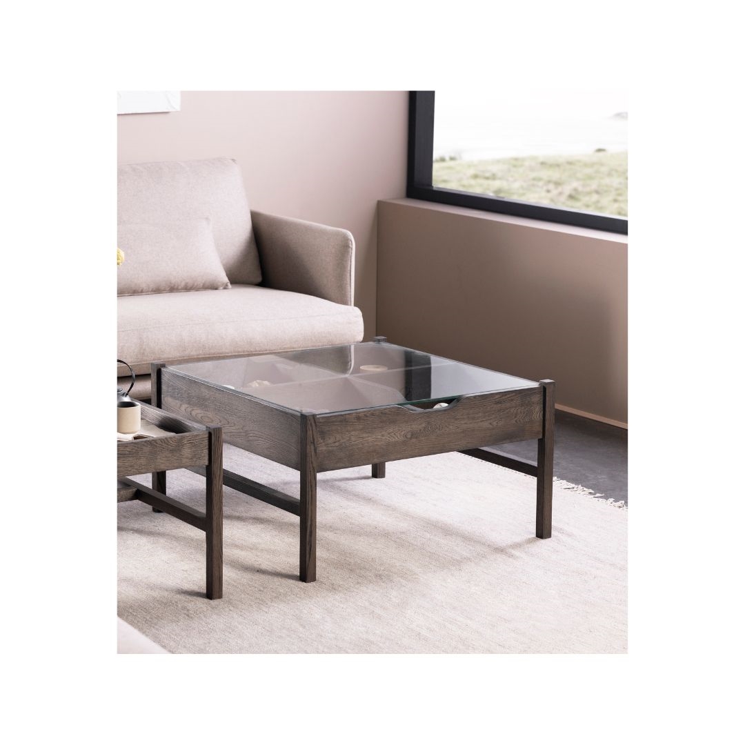 Optic Kvadratisk sofabord - Glas plade - Massiv Mocca Brun olieret ask - Flere størrelser