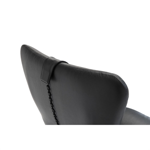 Den dekorative syning på ryggen giver stolen et eksklusivt og håndværksmæssigt udtryk, der adskiller sig fra klassiske lænestole.