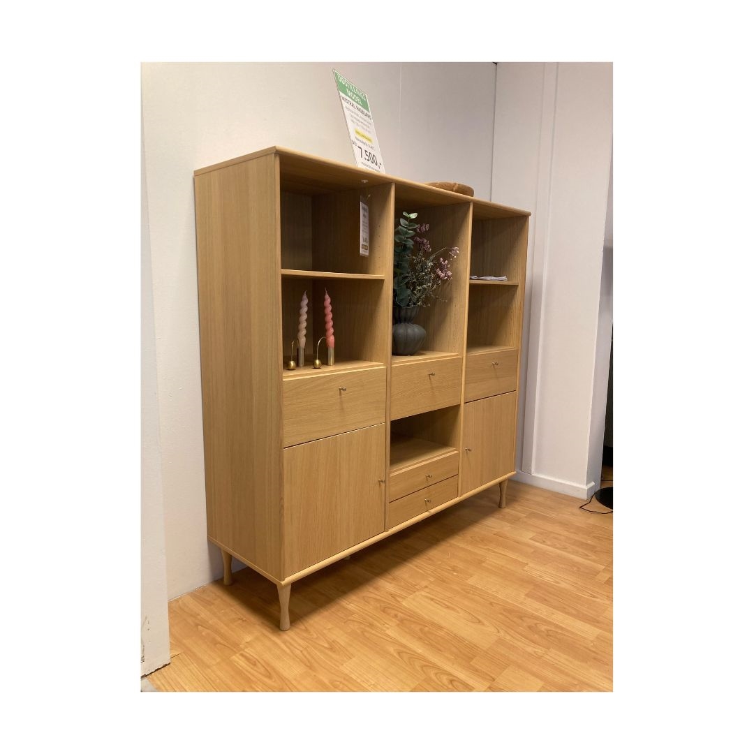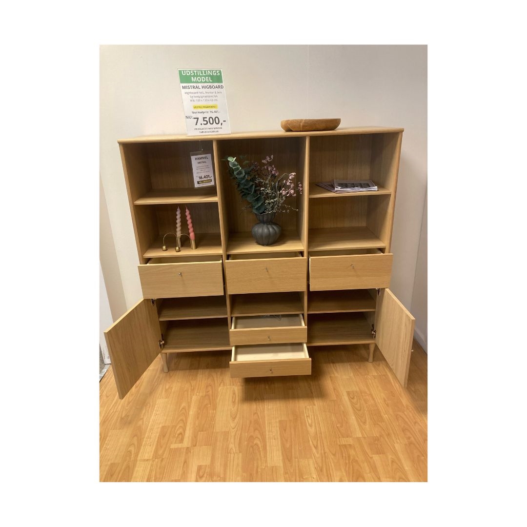 Flot highboard fra danske Hammel Furniture. Dette møbel er en del af Mistral serien, og står her i en flot eg hvidpigmenteret og grafit farve.