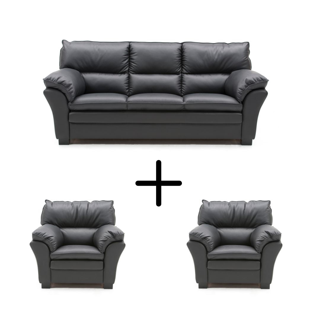 Palma 3 + 1 + 1 pers. sofaer i Soleda/skai sort læder