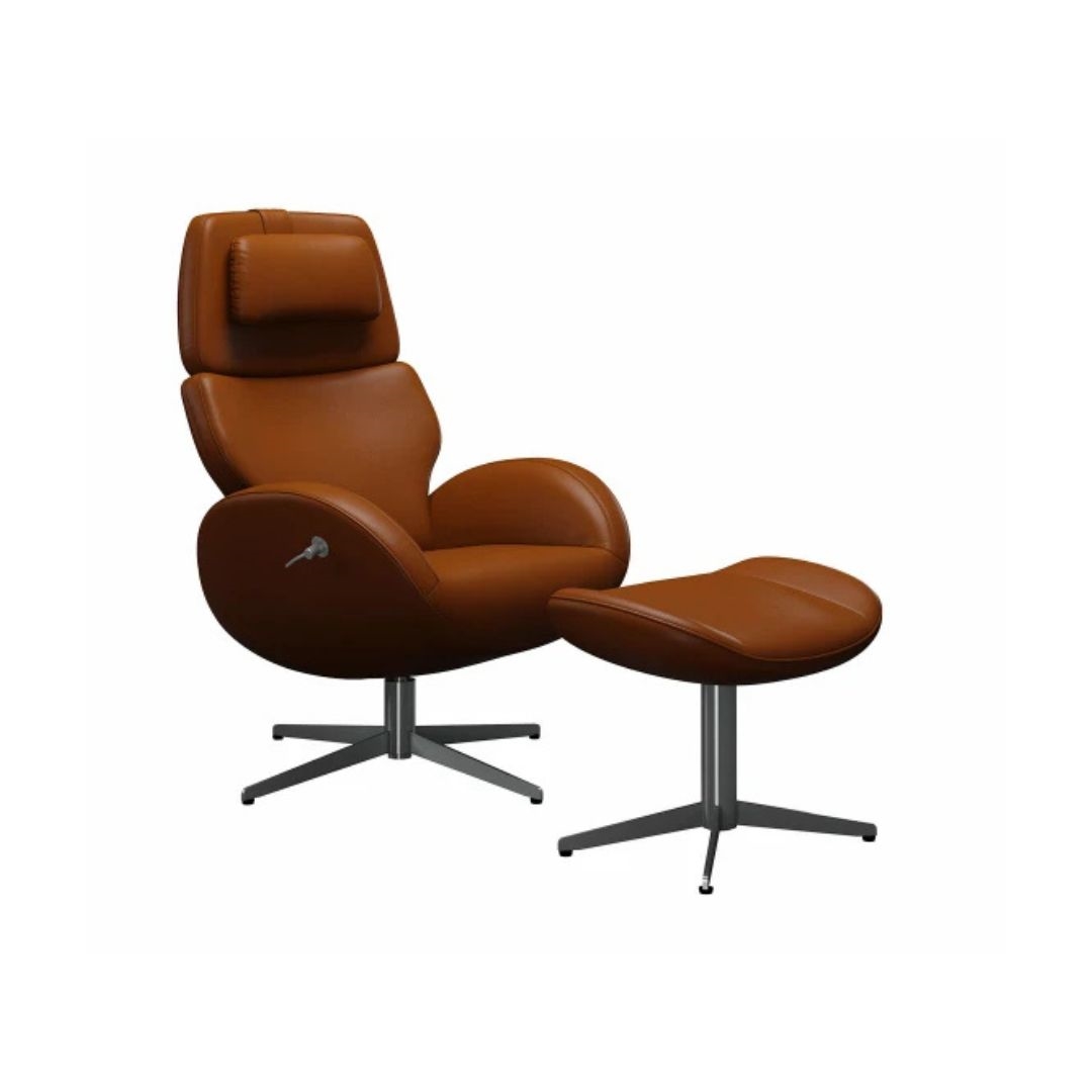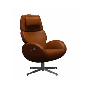 Paz lænestol - Classic læder cognac - Børstet stål sokkel - Stærk pris