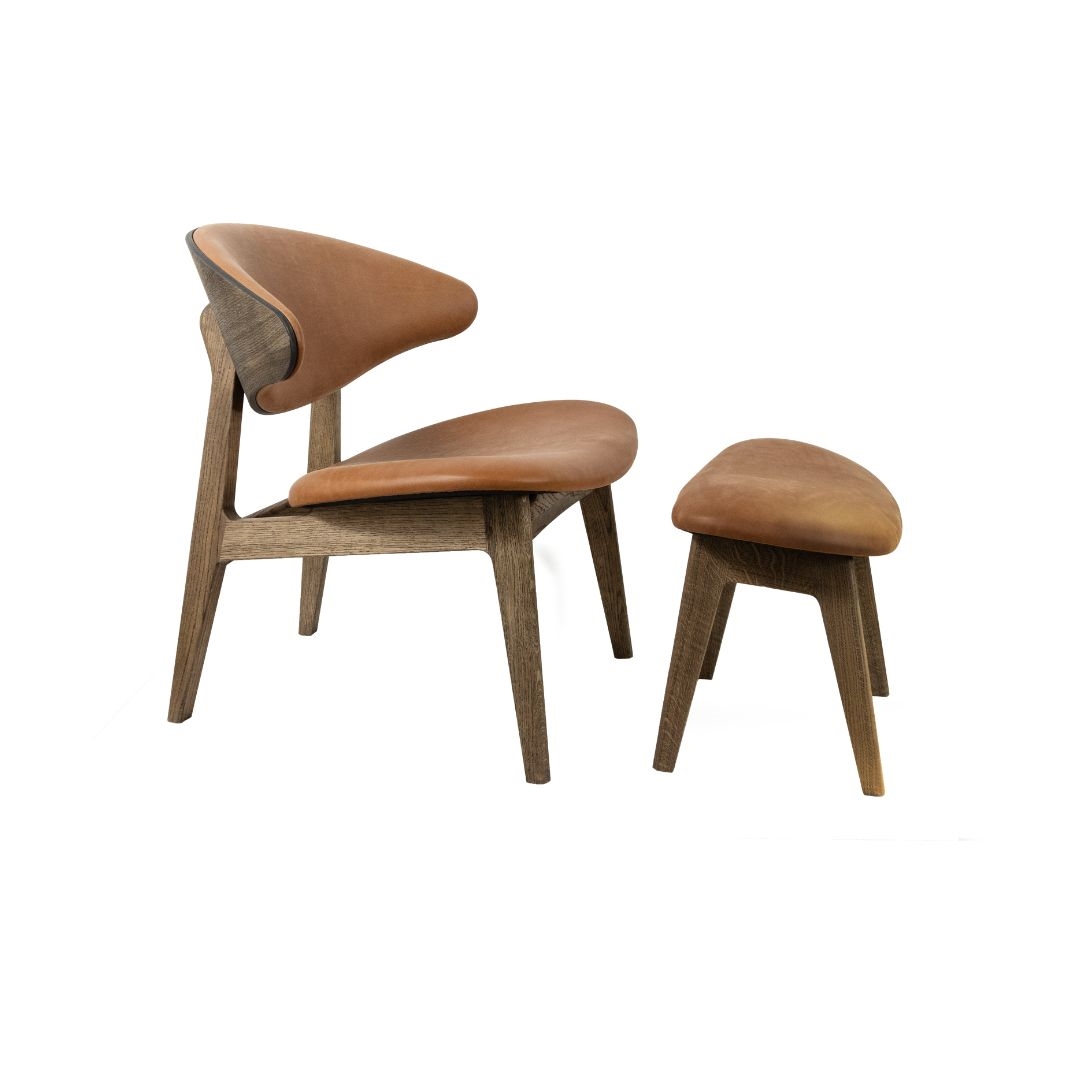RAM LOUNGESTOL KLC02S - TERRA SOIL LÆDER - MOCCA BRUN OILERET EG - Med skammel