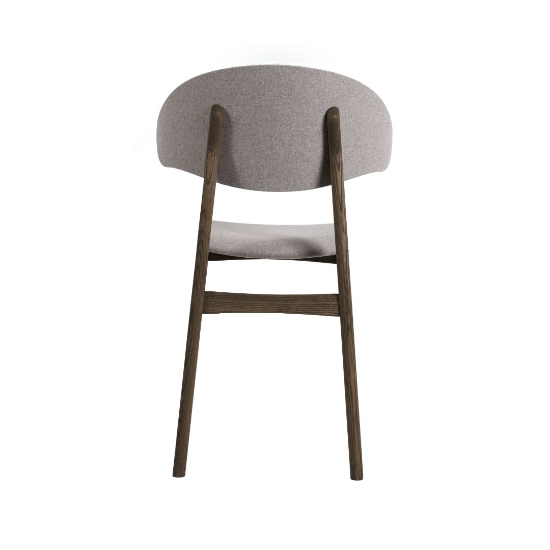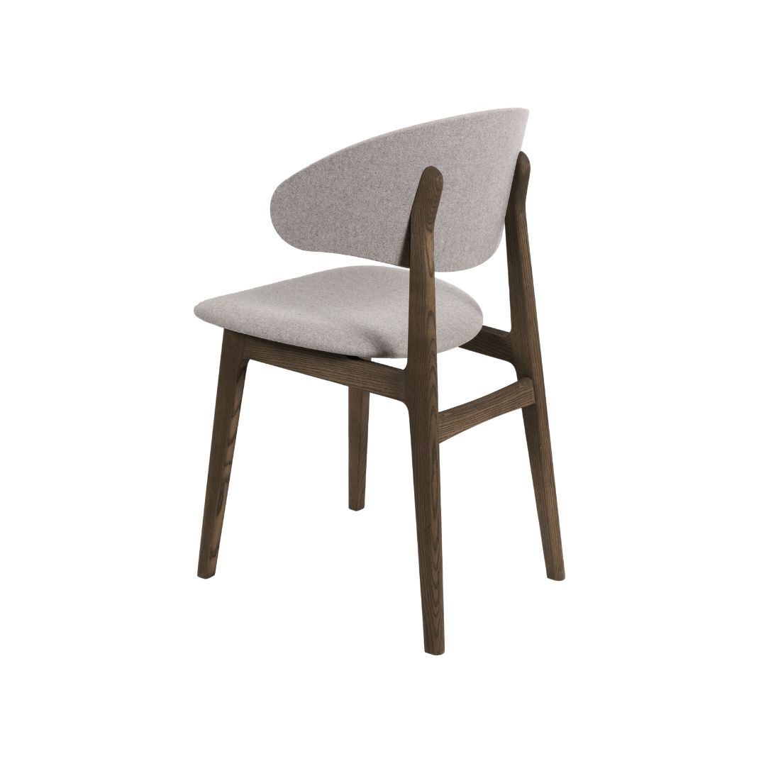 Ryglænet er kendetegnet ved sine harmoniske linjer og raffinerede proportioner, som giver stolen et eksklusivt og indbydende udtryk – uanset hvilken vinkel man ser den fra. Det gør Ram til en stol, der ikke blot fungerer som spisebordsstol, men som et designelement i sig selv.