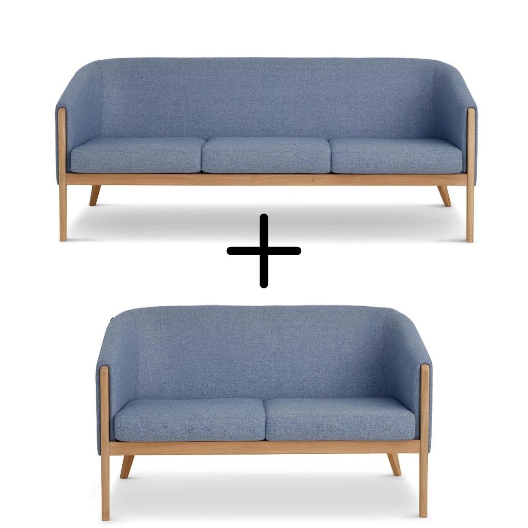 Skalma - Mexico sofasæt 2 + 3 pers. / Blå uldstof / Stel eg - Bredde 133 cm og 193 cm.
