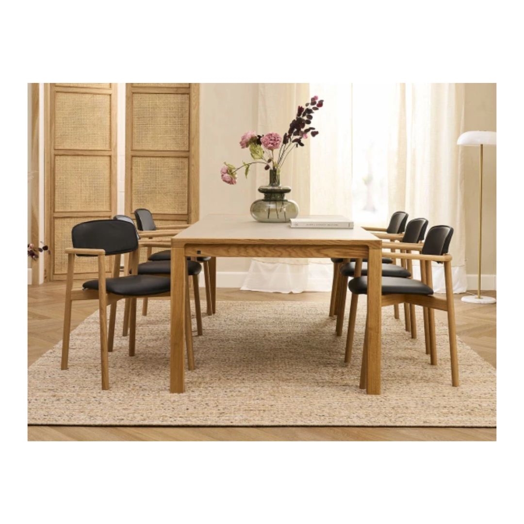 Medfølgende er to tillægsplader, som giver ekstra siddepladser til gæster og store sammenkomster. Pladerne opbevares diskret i et integreret magasin under bordet – en praktisk løsning, der gør det nemt at forlænge bordet fra 209 cm til hele 308 cm.