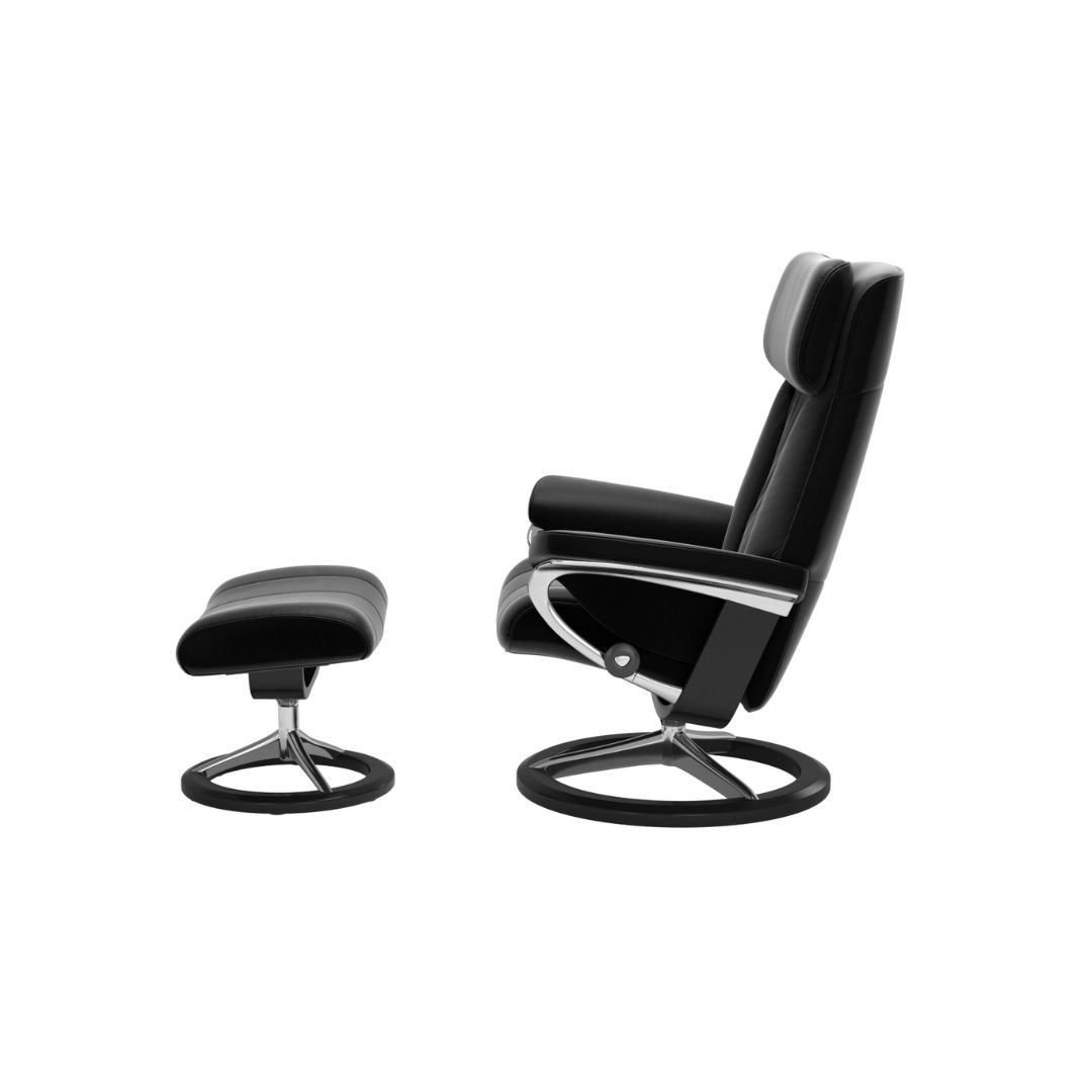 Stressless Paul (M) lænestol med skammel - Signature Stel Krom/Sort - Paloma læder Sort