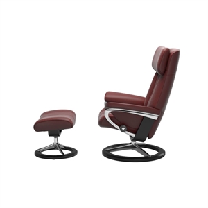 Stressless Paul (M) lænestol med skammel - Signature Stel Krom/Sort - Paloma læder Cherry