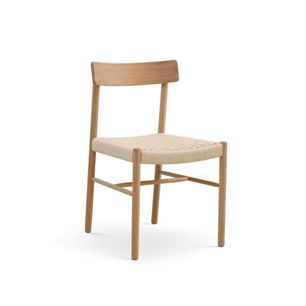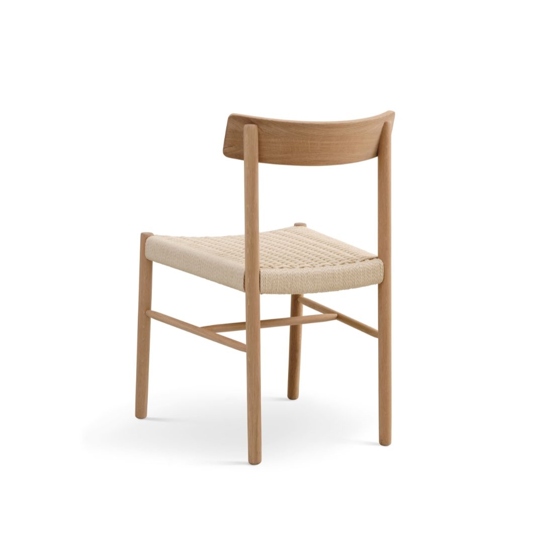 De rene linjer og den smukke kombination af egetræ og kraftflet gør stolen både robust og indbydende – perfekt til både det klassiske og moderne hjem. Brug den omkring spisebordet, som ekstra siddeplads eller som dekorativ stol i entré eller soveværelse.