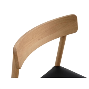 Sydney spisebordsstolen i sort læder og massiv eg forener skandinavisk minimalisme med en elegant og moderne kant. Det stilrene design og det sorte semianilin lædersæde giver stolen et eksklusivt udtryk, der passer perfekt ind i både klassiske og moderne spisestuer.