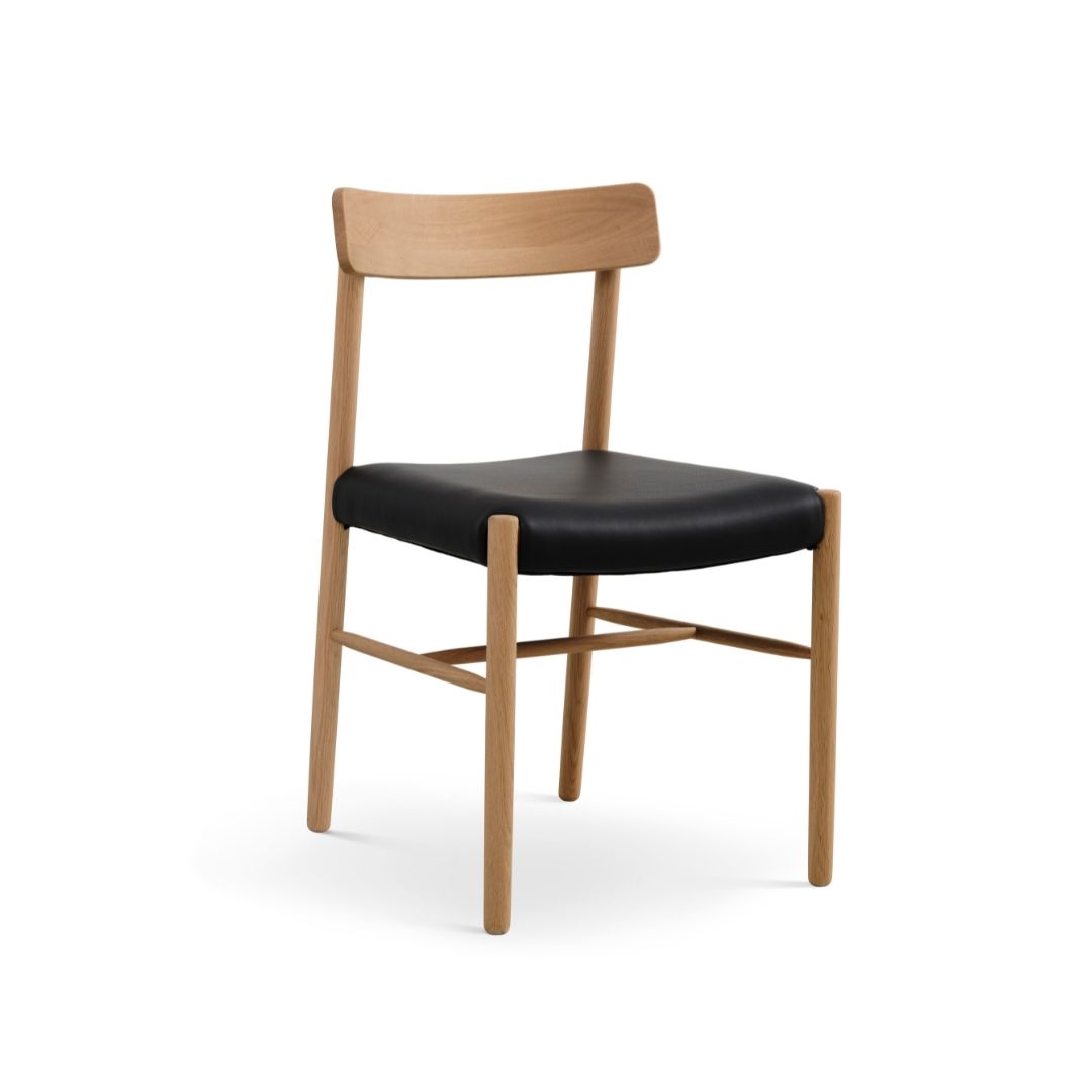 Sydney Spisebordsstol / Massiv eg / Sort læder - Stærk Pris