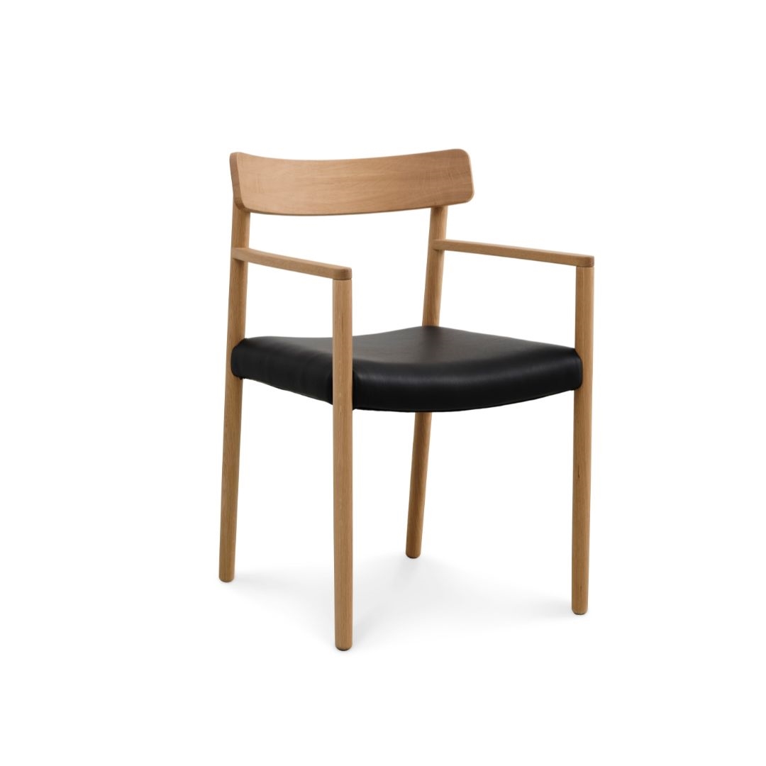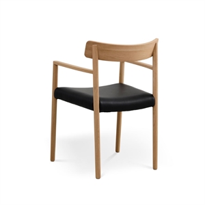 Sydney Spisebordsstol m. armlæn / Massiv eg / Sort læder - Stærk Pris