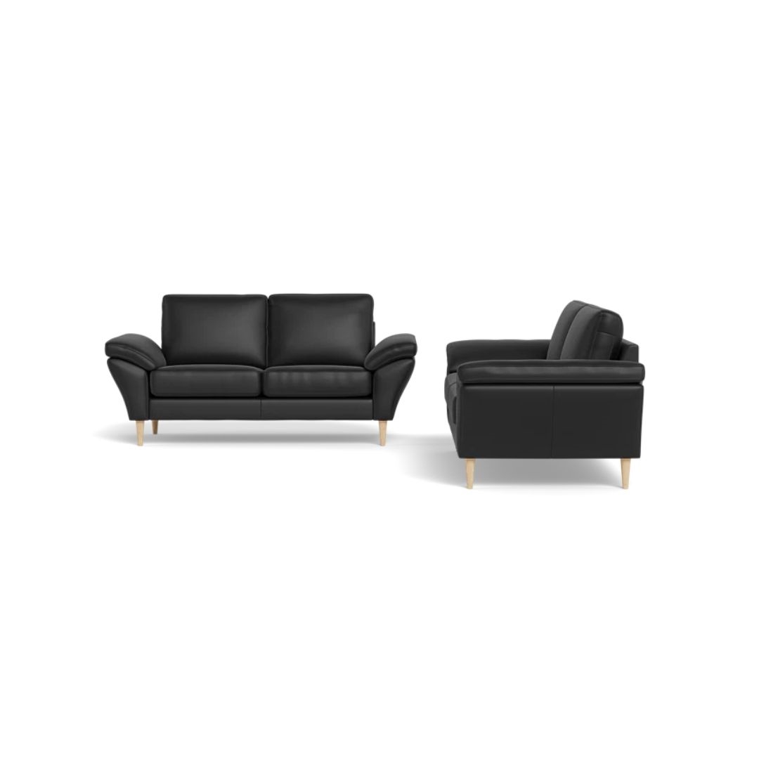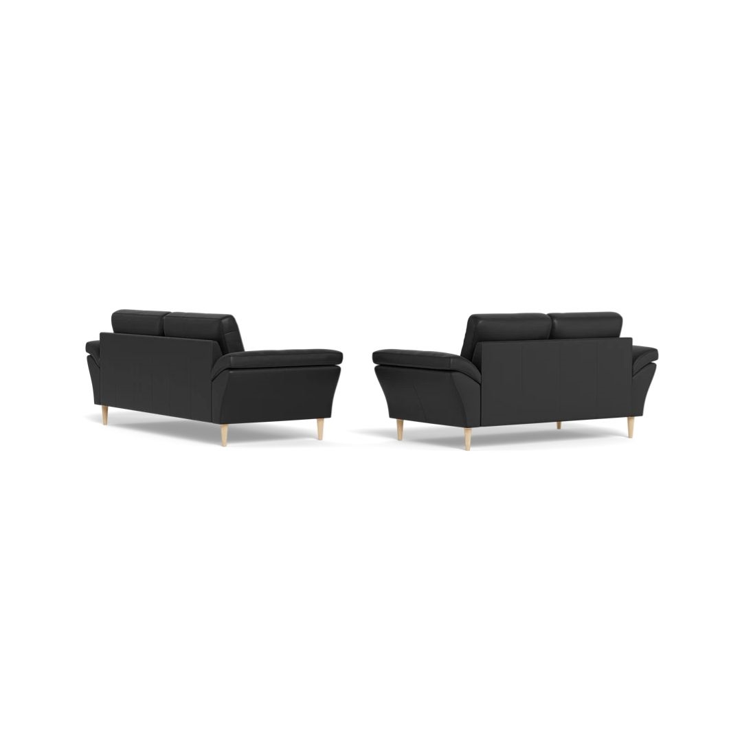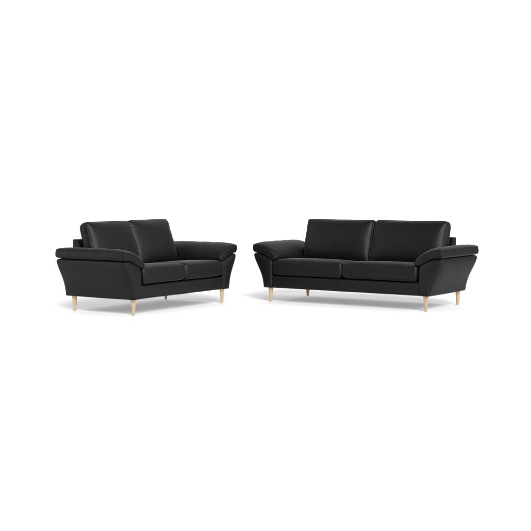 Symfoni 3+2 pers. sofasæt - Semi/spalt Sort læder - Mål: 222 x 182 cm.
