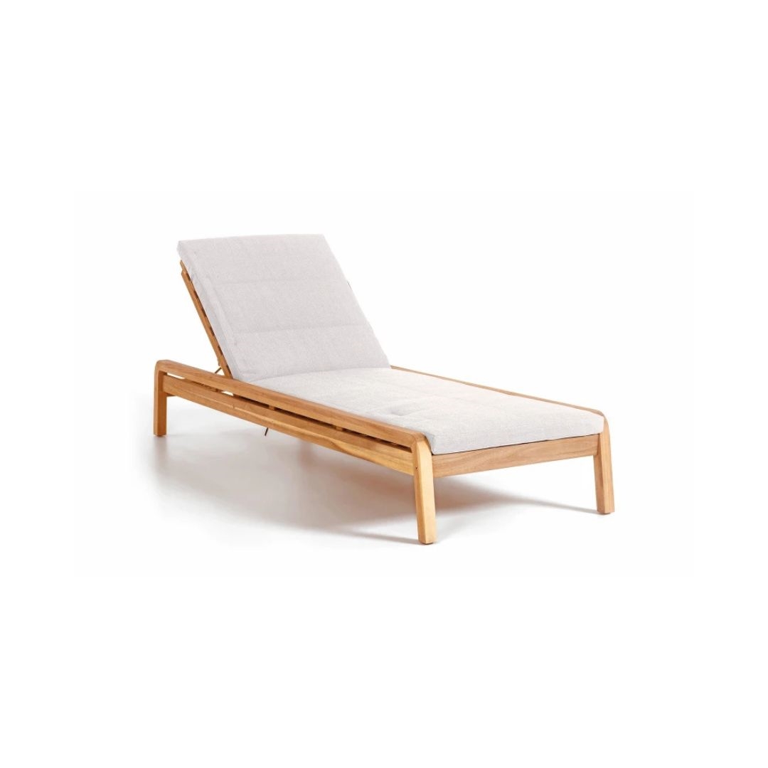 Liggestolen er fremstillet i slidstærkt, olieret akacietræ, der både ser flot ud og holder til udendørslivet. Den beige hynde giver en behagelig kontrast til træet og er lavet i et vandafvisende materiale, som gør den ideel til brug i haven, på altanen eller ved poolen. Ryglænet er justérbart, så du nemt finder den perfekte position – uanset om du vil sidde op eller ligge helt ned.