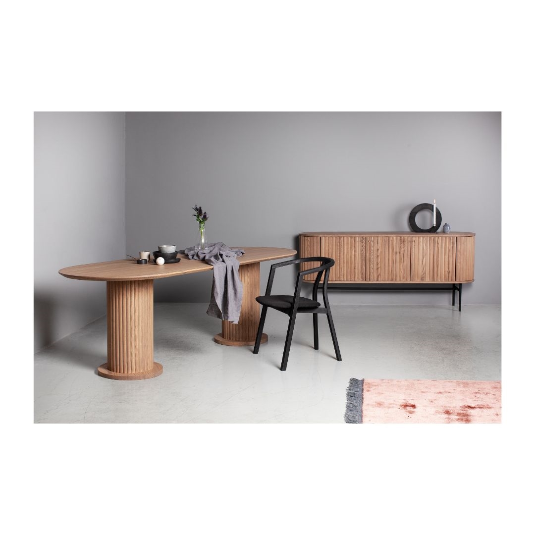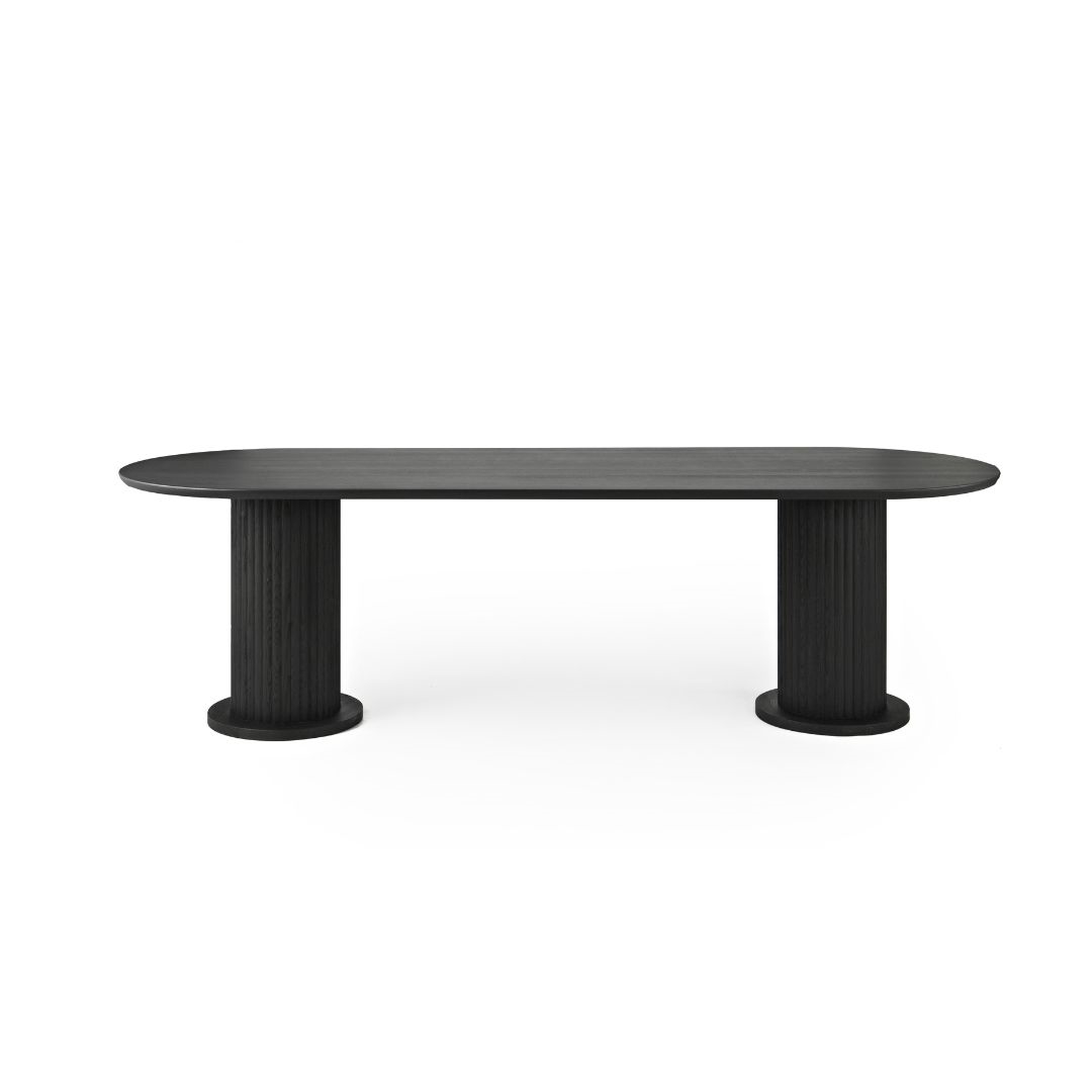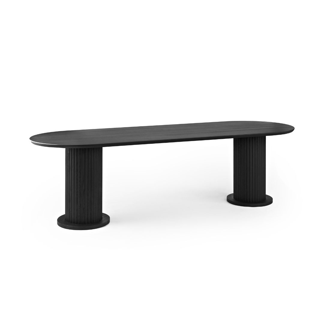VELVET AFLANGT SPISEBORD - SØJLEBEN M/ RILLER - SORT MAT LAKERET ASK - FLERE STØRRELSER